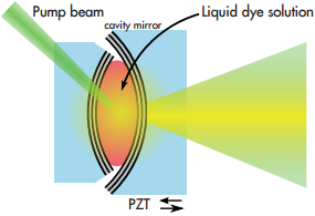圖1:充滿染料的微腔,包含兩個高反射率球面介質膜反射鏡。