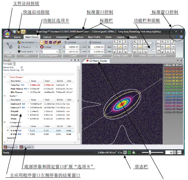 • BeamGage 軟件結合了LBA 軟件精確測量的特點和BeamStar 軟件操作方便的特點