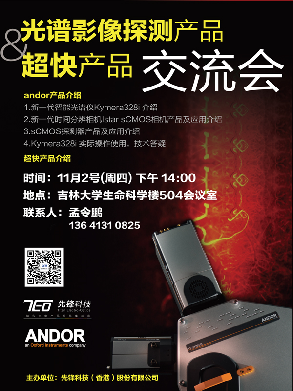 11月2日,由先鋒科技(香港)股份有限公司主辦的光譜影像探測產(chǎn)品及超快產(chǎn)品交流會即將在吉林大學(xué)召開,屆時(shí)歡迎廣大新老用戶報(bào)名。會議將會對新一代科研相機(jī)產(chǎn)品及超快激光器產(chǎn)品進(jìn)行詳細(xì)的介紹,也會針對用戶所關(guān)心關(guān)注的問題一起探討交流,誠摯邀請您的參與!
