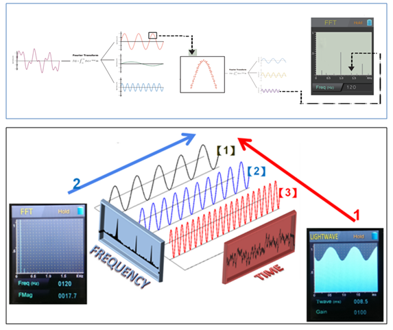 通過 LightWave 模式,好比有一臺示波器立即檢測頻率波形,及顯示振幅大小變化。