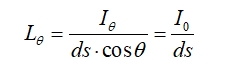 光度學(xué)的亮度定義如圖2所示,對應(yīng)朗伯光型的光源在θ角方向亮度為: