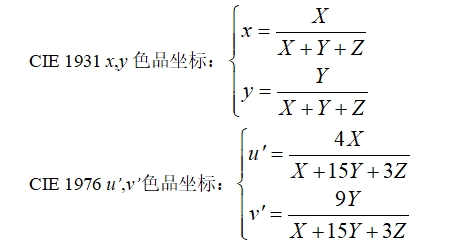 光源的色度用色品坐標(biāo)x,y表示,與光源的相對光譜功率分布有關(guān)。