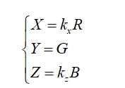 式中,kx、kz為色校準(zhǔn)系數(shù);R、G、B是儀器相應(yīng)各探測器的輸出值。