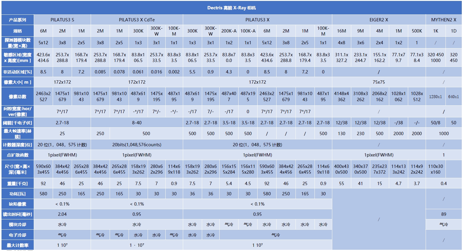 搭配的探測器選項2(Dectris)