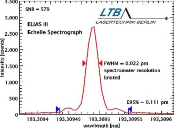 光譜儀校準:Ixion-193-SLM標準款就已經很適合做193nm深紫外頻段高分辨率光譜儀校準,下圖為校準德國LTB高分辨率中階梯光柵光譜儀的實測圖