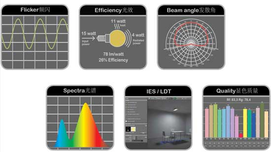 隨著LED在商用照明中的廣泛應(yīng)用,針對LED照明燈具的相關(guān)測試標(biāo)準(zhǔn)也日臻完善。由北美照明學(xué)會(IES)發(fā)布的LM-79指出了LED產(chǎn)品的測試方法和內(nèi)容,測試的內(nèi)容就包含光源的顏色參數(shù)(CRI等),光通量,光效,光強(qiáng)分布,色度以及功率,電壓,電流,功率因數(shù)。由CIE發(fā)布的S:025標(biāo)準(zhǔn),也規(guī)定了LED燈具或模塊的電參數(shù),光度,色度測試要求。其中就包含LED燈具的總光通量,光效,部分光通量,光強(qiáng)分布,中心光強(qiáng),亮度,亮度分布,色坐標(biāo),色溫,顯色品質(zhì)。
