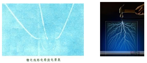 當(dāng)加上高壓后,會在電極附近產(chǎn)生空氣的局部放電——電暈放電,電壓再加高時,電暈放電更加強(qiáng)烈,致使間隙內(nèi)發(fā)生刷狀放電,而后就擊穿了(電弧放電)。如棒-板間隙,在尖電極附近電場強(qiáng)度最大,加上高壓后,電極附近先產(chǎn)生電暈放電,而板上的電力線很疏,不會產(chǎn)生電暈。