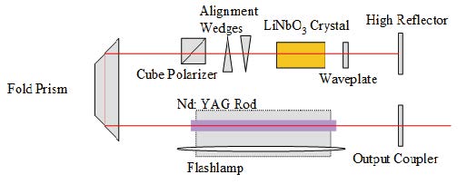 折疊腔結構固體調Q 激光器示意圖
