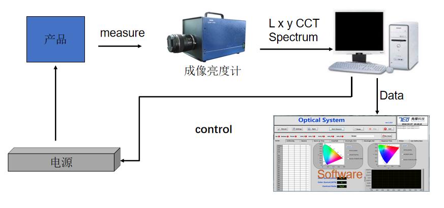 亮度、色坐標、色溫、照度均勻性、色度均勻性等,自動配光、缺陷檢測