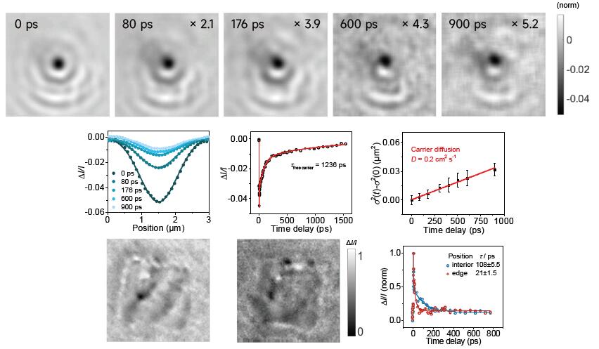 寬場飛秒瞬態吸收成像,載流子擴散、載流子分布,載流子遷移距離
