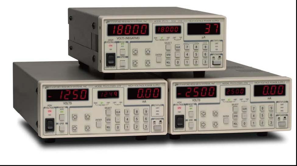 SRS 的PS300 系列新近增加了四個(gè)高壓源:-10KV、+10KV、-20KV 和+20KV。所有PS300 系列的電源均提供包括可編程電流和電壓限幅功能,可選擇過(guò)載響應(yīng),短路保護(hù),及GPIB 通訊接口等多種功能。