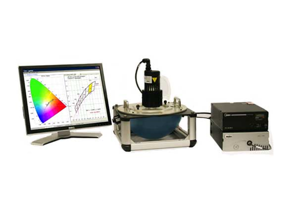 HalfMoon半月型測試系統 專為固態照明燈具中的前通量燈、LED、板式安裝的熱沉式LED而設計,半球內部使用Spectraflect®涂料,使用一塊內部為鏡子的蓋板封住半球,鏡面與半球形成一個虛擬的完整的積分球。