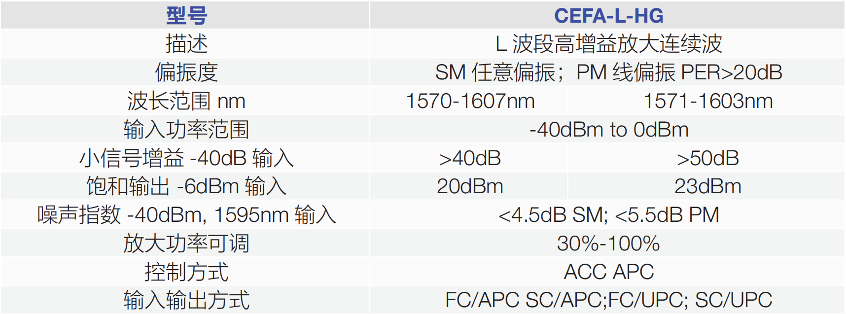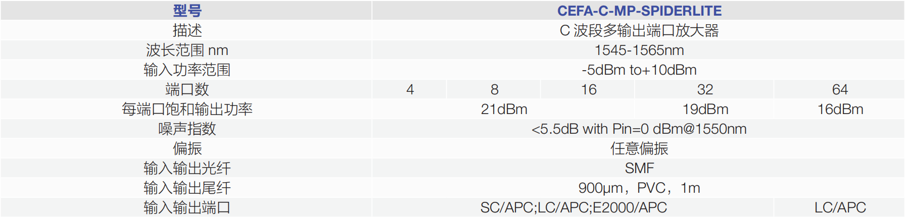 Keopsys 公司提供各種光纖放大器,不同型號可涵蓋可見光,1 μm, 1.5μm,2μm 不同波段,根據(jù)不同的輸入信號強度,輸出信號強度, 增益大小,通道數(shù)提供精準對應的產(chǎn)品。