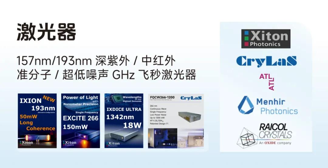 本次展會,德國 Xiton Photonics 多款新品重磅首發,推出單頻 150mW 266nm紫外激光器、長相干高功率50mW 193nm 深紫外激光器、1342nm 18W超高功率激光器;德國 Crylas發布新品—1200mW單頻窄線寬長相干紫外266nm激光器。